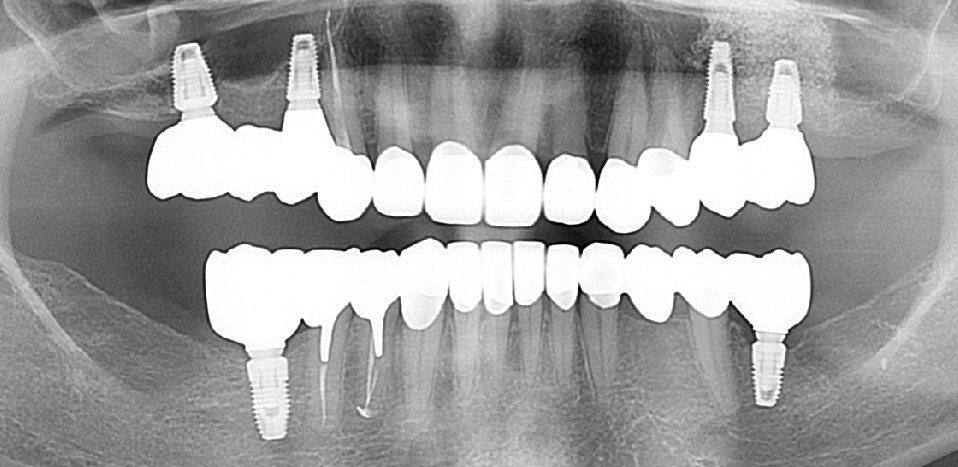 Тотальная реабилитация пациента с большим количеством отсутствующих зубов. Цельноциркониевые коронки, коронки на имплантатах, терапевтическая санация полости рта